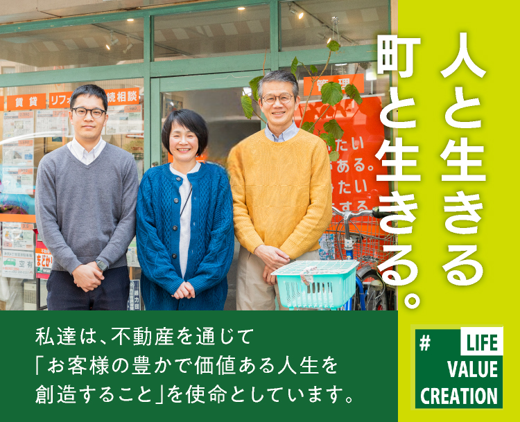 商圏を絞り込み、担当者が現地を歩いて市場動向を把握。買主・売主双方のニーズを点ではなく“面” で結び付け、高値・早期売却を実現します。