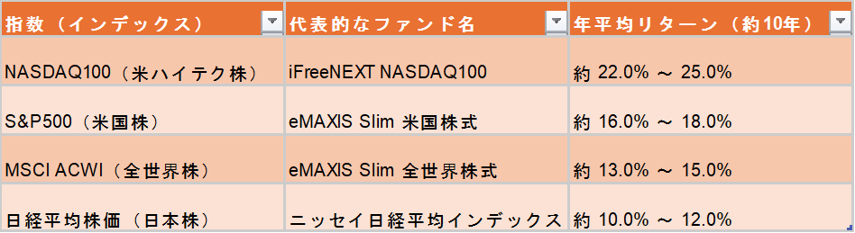 年間5%回るかという点はありますが、以下のインデックスファンドは高い運用利回りを示しています。